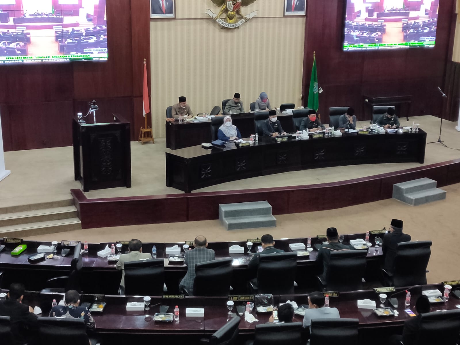 BEKASI – DPRD Kota Bekasi mengadakan rapat paripurna, Rabu (27/7/2022), pukul 16.00 WIB. Kegiatan tersebut dilaksanakan di Ruang Paripurna Sekretariat DPRD Kota Bekasi, yang dihadiri para anggota Dewan DPRD Kota Bekasi, Sekretaris DPRD Kota Bekasi, Kabag dan Kasubag DPRD Kota Bekasi serta Pimpinan DPRD Kota Bekasi.