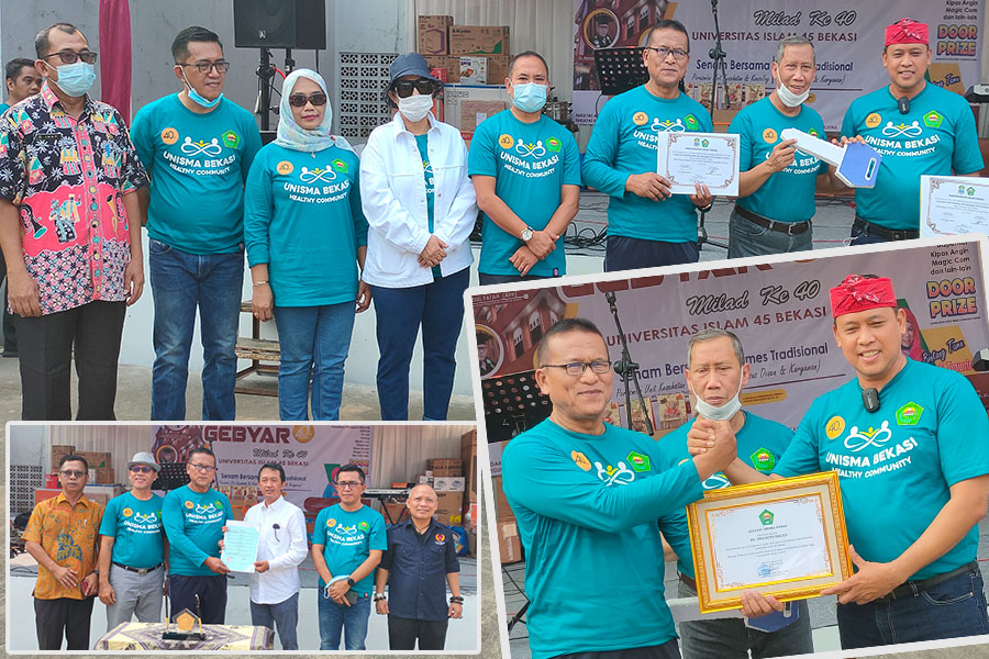 KOTA BEKASI – Senam bersama, pentas seni dan berbagai perlombaan tradisional menandai puncak Milad ke-40 Univeristas Islam 45 Kota Bekasi di lapangan serbaguna kampus setempat, pada Kamis (4/8/2022).