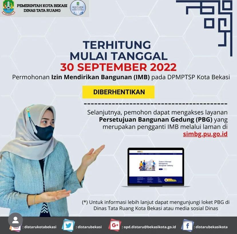 Terhitung mulai tanggal 30 September 2022 permohonan Izin Mendirikan Bangunan (IMB) pada DPMPTSP Kota Bekasi akan dihentikan.