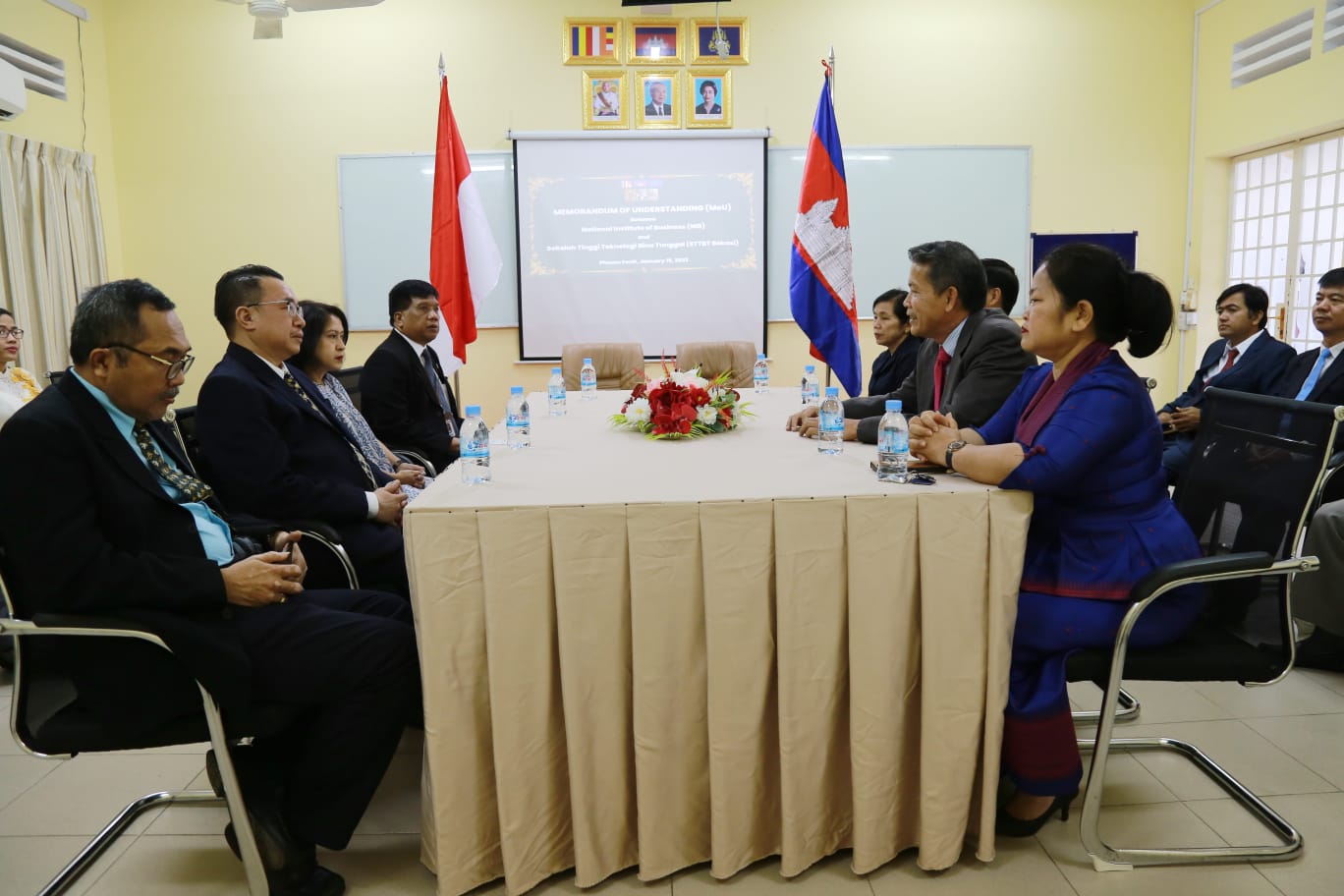 National Business Institute Cambodian ( NIBC) dibawah Kementrian Perdagangan, Kementiran Pendidikan, Olah raga dan Pemuda ,Kementrian Tenaga Kerja dan Pelatihan Vocasional Kerajaan Kamboja memiliki Standard Pendidikan Internasional . Tep Oeun, Direktur NIB pada penanda tanganan Memorandum of Understanding dan Memorandum of Activity dengan Sekolah Tinggi Teknologi Bina Tunggal melihat kerjasama Perguruan Tinggi Kamboja dan Indonesia dapat tingkatkan keahlian dan kompetensi Mahasiswa 2 Negara dengan Pengembangan Bisnis Internasional dengan Teknik Informasi dengan Basis Akademik Keteknikan..NIB Kamboja memiliki Program Strata 1 dan Strata 2.yang terakreditasi oleh Acreditation Committee of Cambodia (ACC) dan Internasional Standard Organization (ISO 9001:2008).