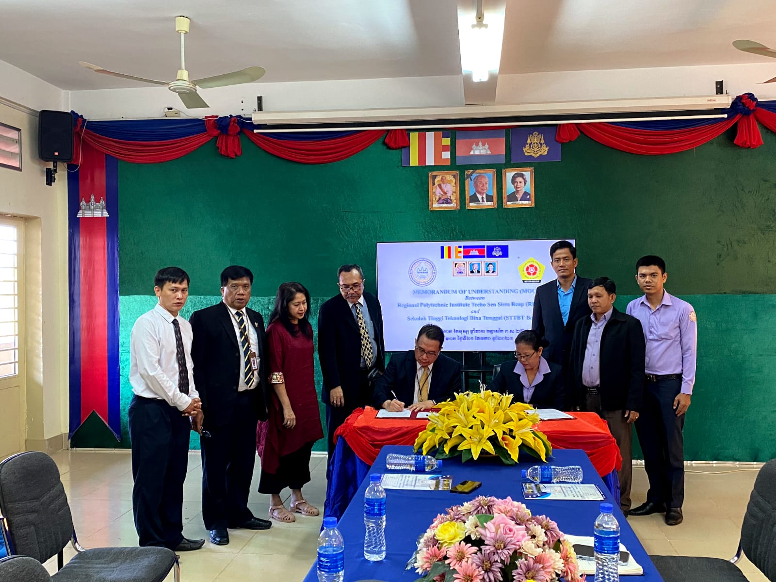 Sementara itu Phang Puthy Direktur Regional Polytechnic Institute Techo Sen Siem Reap Cambodia (RPITSSR) – Sieam Reap, Cambodia dan Sekolah Tinggi Teknologi Bina Tunggal melaksankan Memorandum of Understanding (MOU) ungkapkan STT Bina Tunggal satu satunya Perguruan Tinggi dari Indonesia melakukan kerjasama Internasional antar Perguruan Tinggi . Peluang ini memberikan Peningkatan mutu Pendidikan Vokasi khususnya di Siem Reap – Kamboja.RPITSSR banyak didukung Industri Kelistrikan Multinasional seperti Schnider . Kesempatan Mahasiswa Kamboja yang berasal dari Siem Reap dapat belajar di Indonesia khususnya di STT Bina Tunggal.