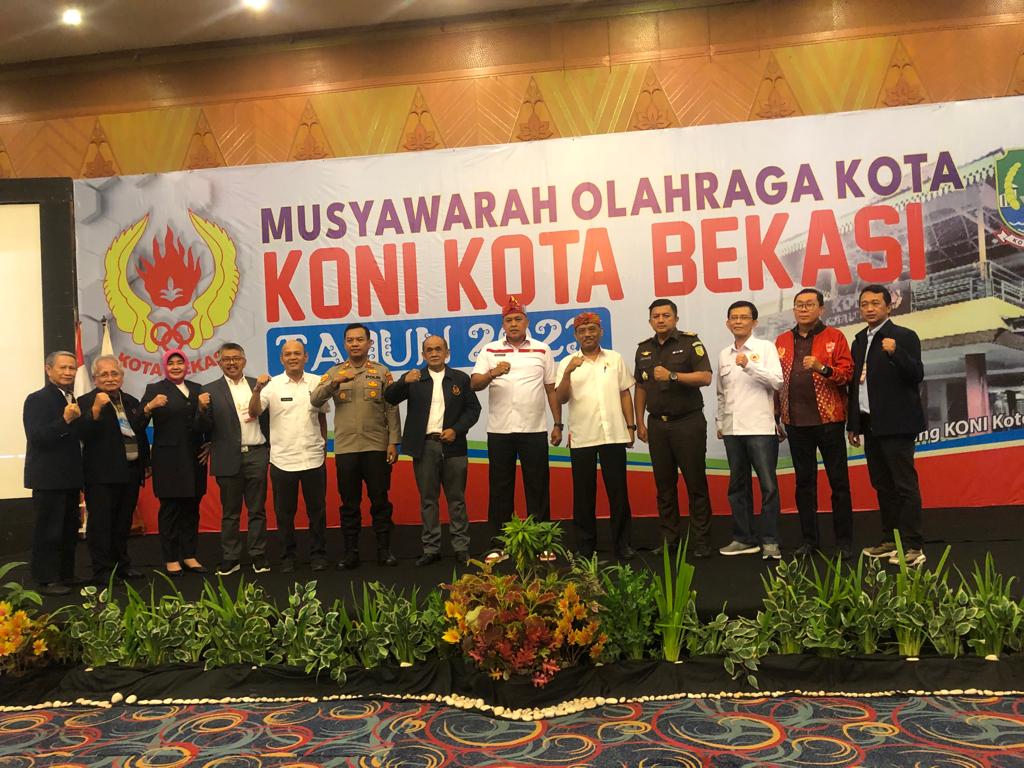 KOTA BEKASI – Komite Olahraga Nasional Indonesia (KONI) Kota Bekasi resmi mengelar Musyawarah Olahraga Kota (Muskot) di Hotel Horison, Jalan KH Noer Ali, Rabu (22/2/2023).