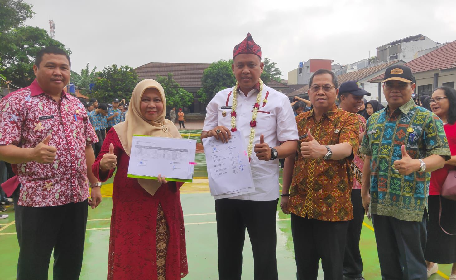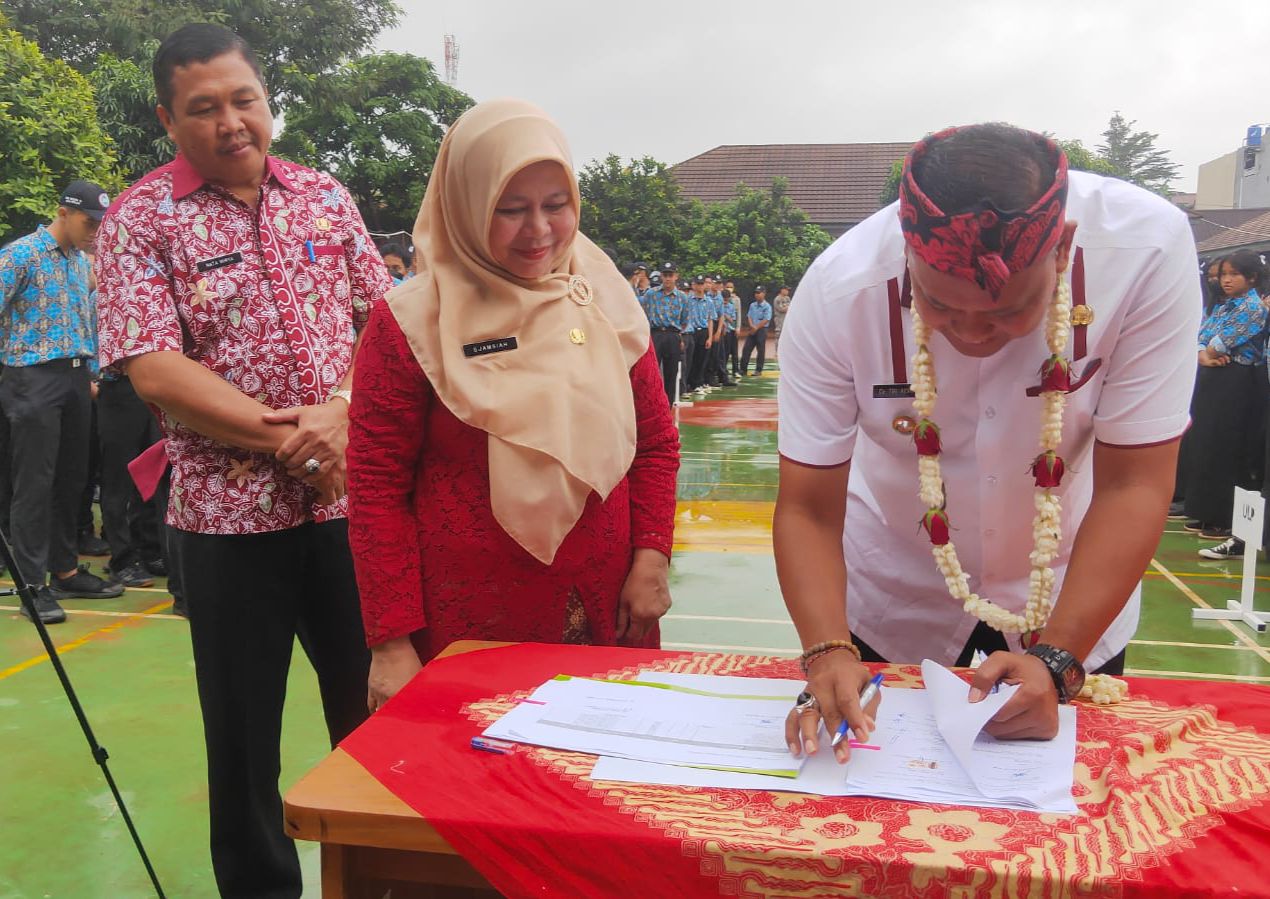 Kota Bekasi – Guna memenuhi kebutuhan sarana prasarana pendidikan, Plt. Wali Kota Bekasi lakukan penandatanganan dan serah terima Aset Barang Milik Daerah (BMD) kepada SMK Negeri 14 Kota Bekasi, Kelurahan Jatikarya, Kecamatan Jatisampurna pada Kamis, (23/02)