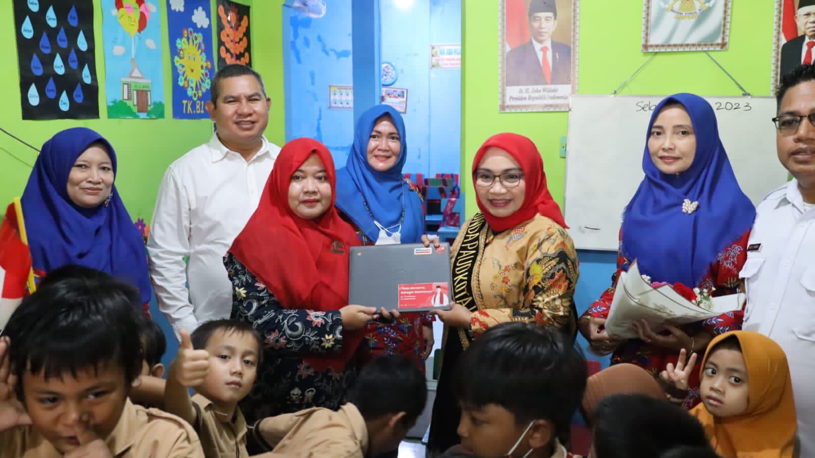 Pada kesempatan itu, Wiwiek Hargono yang didampingi aparatur setempat juga membagikan susu dan makan tambahan serta satu unit laptop untuk menunjang sarana di PAUD tersebut.