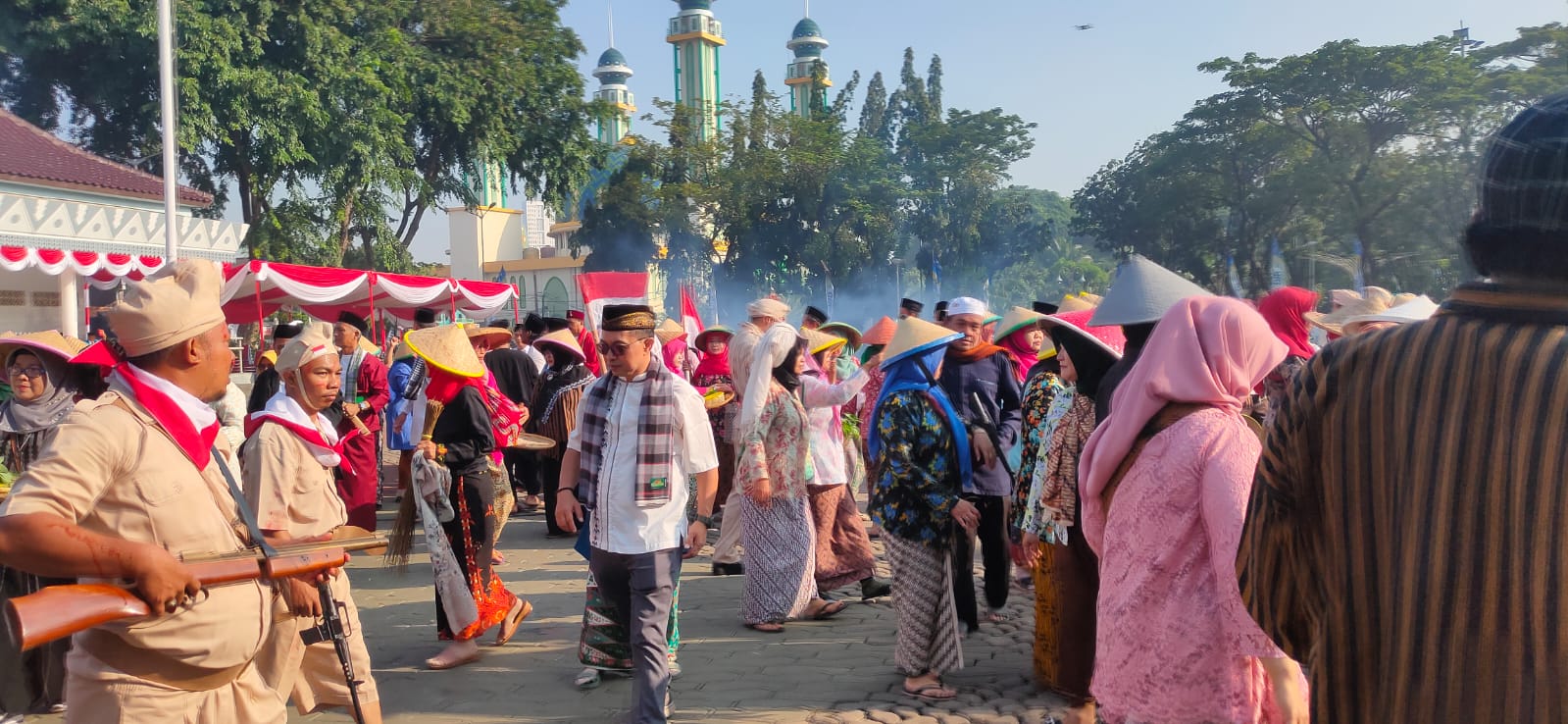 Sementara Mukita W Isro salah Pemeran KH Noer ali menyampaikan bahwa drama kolosal yang dilaksanakan itu disutradarai oleh Aki Maja dan Penulis Skenario dari Maja Yusriwan.
