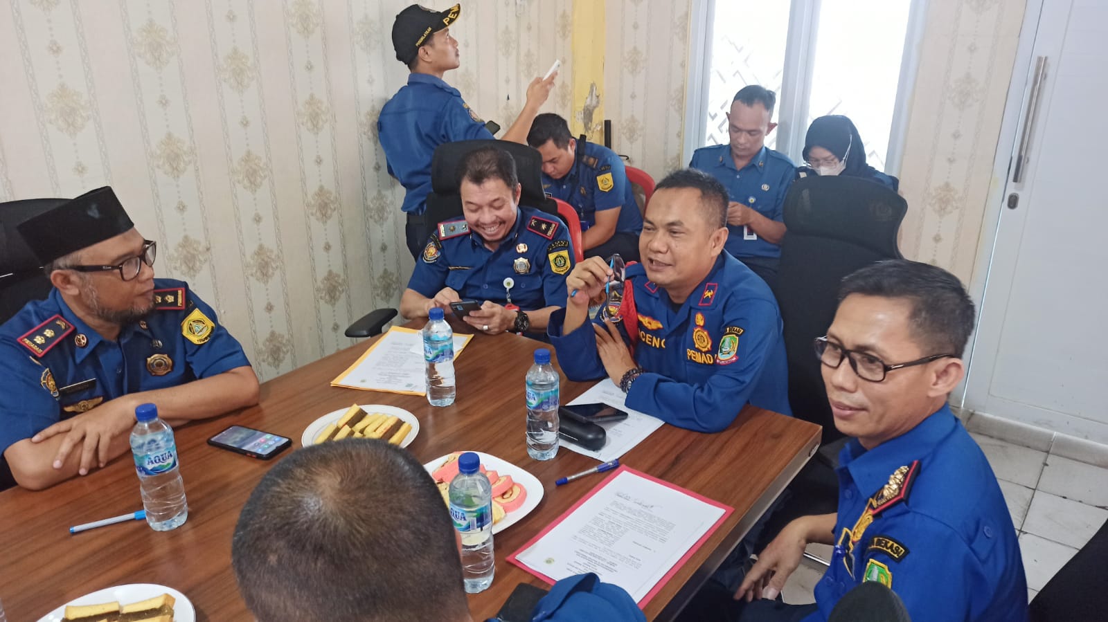 Dinas Pemadam Kebakaran (Disdamkar) Pemerintah Kabupaten Bogor mengunjungi Disdamkar Kota Bekasi dalam rangka membahas perjanjian kerja sama perihal evaluasi penanggulangan kebakaran dan penyelamatan di wilayah perbatasan antara Kabupaten Bogor dan Kota Bekasi di Ruang Rapat Mako Disdamkar Kota Bekasi, pada Kamis (11/05).