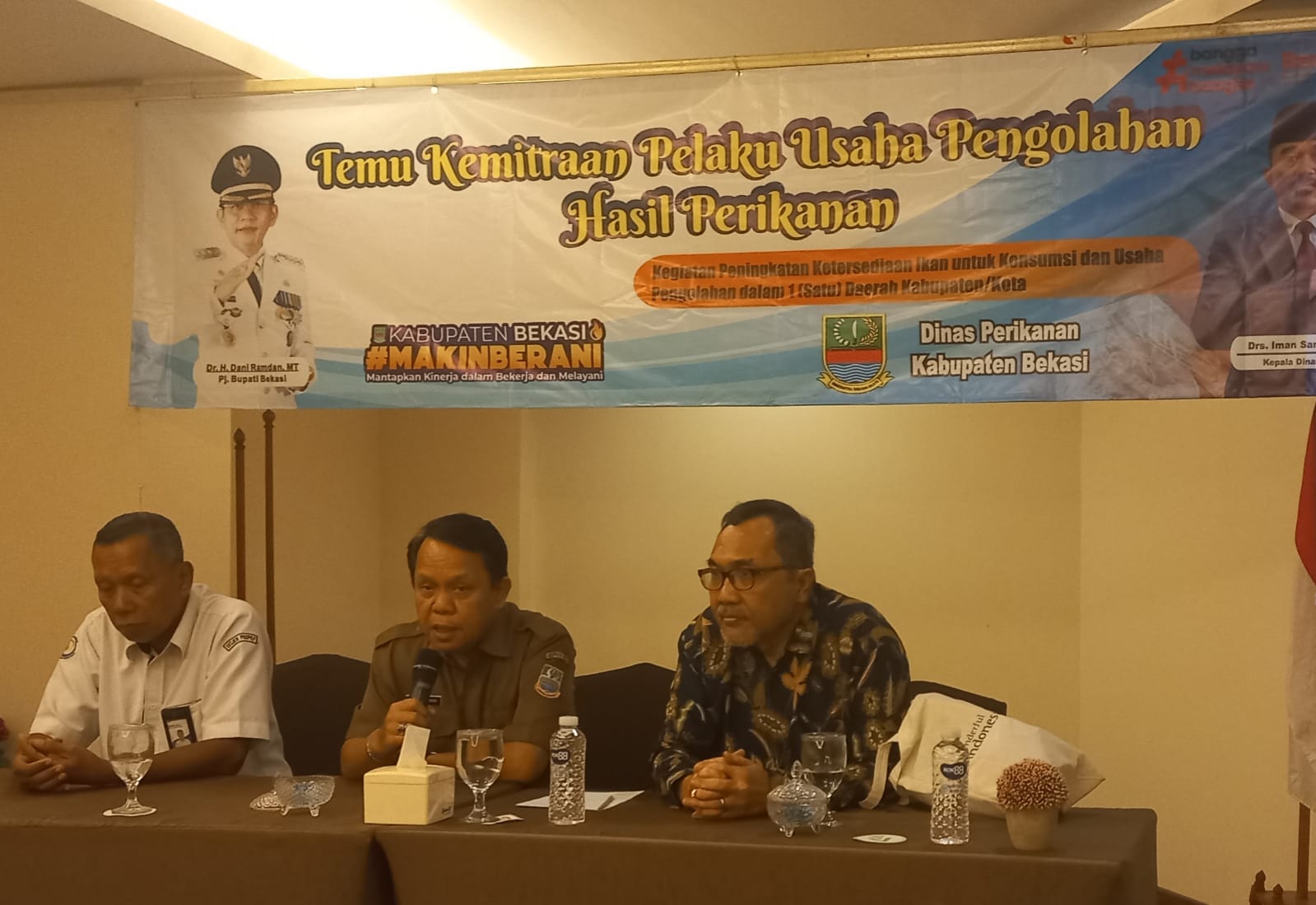 Dinas Perikanan Kabupaten Bekasi laksanakan Temu Kemitraan Pelaku Usaha Perikanan. Pelaku Usaha di Grand Cikarang Hotel, Temu Kemitraan Pelaku Usaha Perikanan terdiri dari pelaku usaha Olahan Paska Panen. Kepala Dinas Perikanan Kabupaten Bekasi Iman Santoso menyampaikan Temu Kemitraan kemampuan Pelaku usaha perikanan sebagai Wirausaha dalam Produksi, Pemasaran dengan memperluas jejaring Pasar.