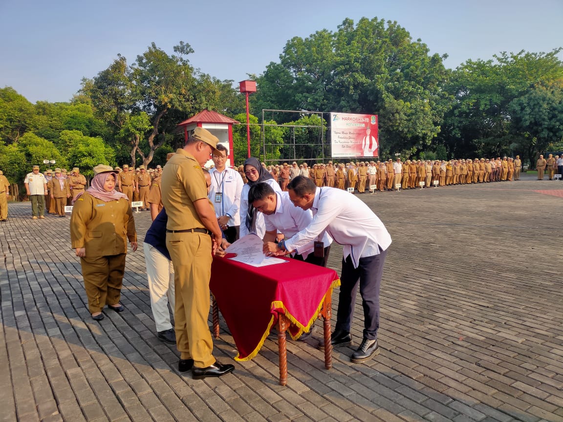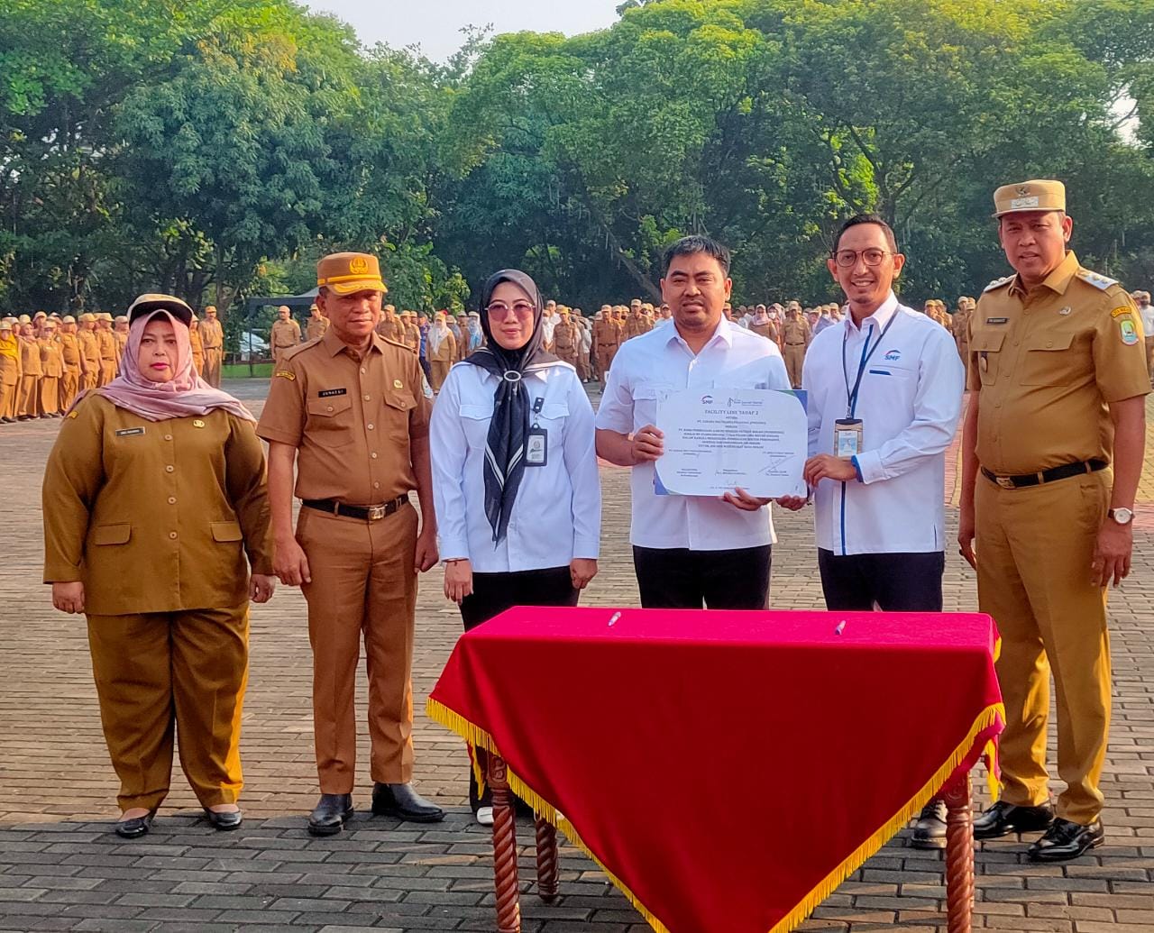 Penandatanganan kerja sama ini dilakukan oleh Kepala Unit Usaha Syariah SMF, Leo Khadafi dan Plt Direktur Utama BPRS Patriot, Fasihul Islam di sela apel pagi di Plaza Pemerintah Kota Bekasi, Senin (14/8). Penandatangan ini disaksikan oleh Plt Wali Kota Bekasi, Tri Adhianto; Pj Sekretaris Daerah Kota Bekasi, Junaedi; dan Direktur Operasional BPRS Patriot, Nuraeni.