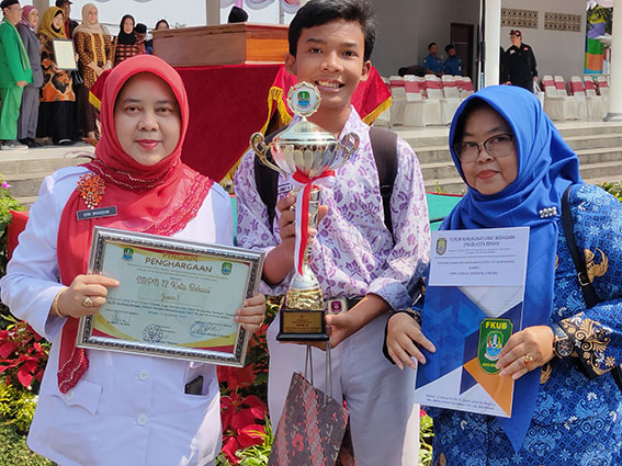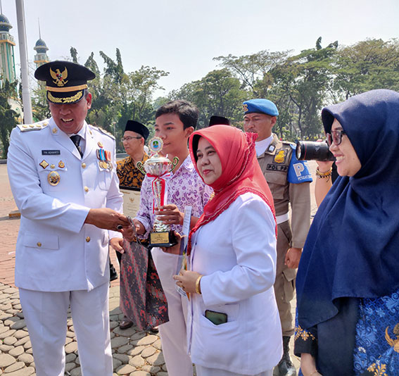 Piala dan piagam lomba ini diberikan oleh Plt Wali Kota Bekasi, Tri Adhianto saat momentum perayaan HUT ke-78 RI di Alun-alun Kota Bekasi pada Kamis (17/8). Kepala SMPN 12 Kota Bekasi, Dini Wiandini, didampingi oleh guru pembimbing, menerima piala dan piagam tersebut.