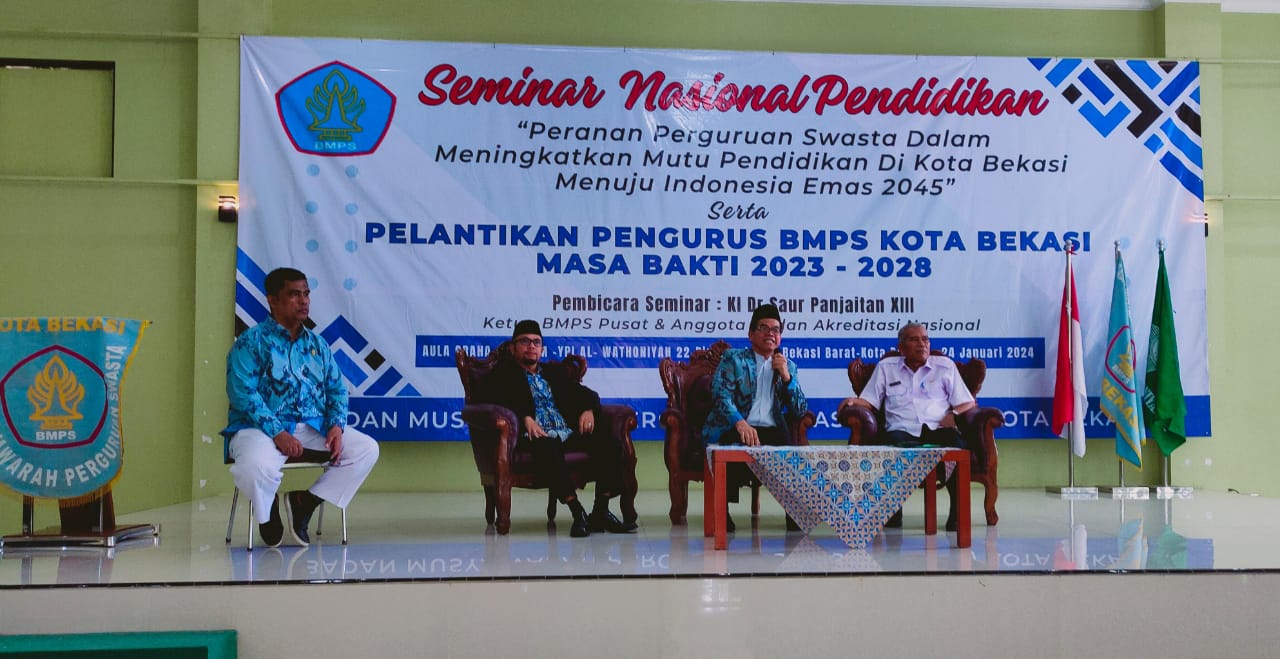 Demikian hal itu mengemuka saat kegiatan Seminar Nasional Pendidikan dengan tema “Peran Perguruan Swasta Dalam Meningkatkan Mutu Pendidikan Kota Bekasi Menuju Indonesia Emas 2045”. |Bertindak sebagai ,moderator Drs H A|yung Sardi Dauly sekretaris BMPS Kota Bekasi