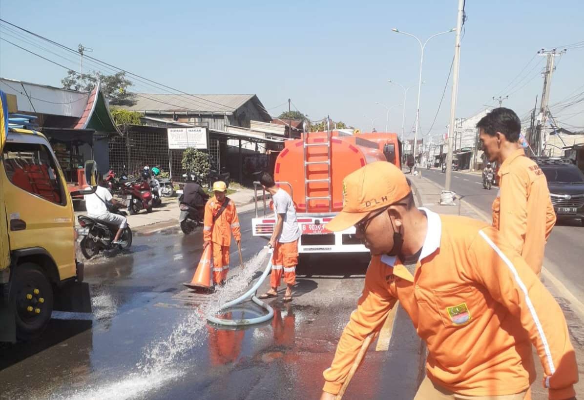 Guna menyiapkan jalur mudik Lebaran 2024 dengan kondisi jalan yang mantap, Dinas Lingkungan Hidup (DLH) Kabupaten Bekasi membersihkan sisa-sisa tanah di sepanjang ruas jalan nasional antara Kota Cikarang hingga perbatasan Kabupaten Karawang.