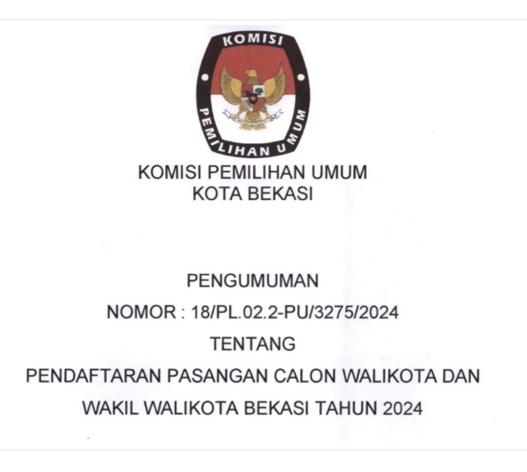 BEKASI – Pemilihan Kepala Daerah (Pilkada) 2024 semakin dekat. Komisi Pemilihan Umum (KPU) Kota Bekasi, pada Minggu (25/8/2024) telah mengumumkan pendaftaran bakal calon Wali Kota dan Wakil Wali Kota Bekasi, yang akan digelar bulan November mendatang.