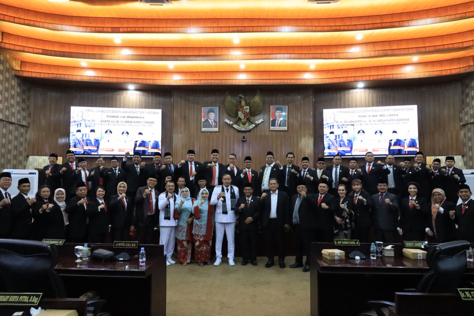 KOTA BEKASI – Usai serah terima jabatan dari Pejabat (Pj.) Wali Kota Bekasi kepada Wali Kota Bekasi dan Wakil Wakil Wali Kota Bekasi Periode 2025-2030, Tri Adhianto dan Abdul Harris Bobihoe di Pendopo Wali Kota Bekasi, rangkaian acara berlanjut untuk menghadiri rapat paripurna penyampaian pidato sambutan pertama Wali Kota dan Wakil Wali Kota Bekasi di gedung DPRD Kota Bekasi.