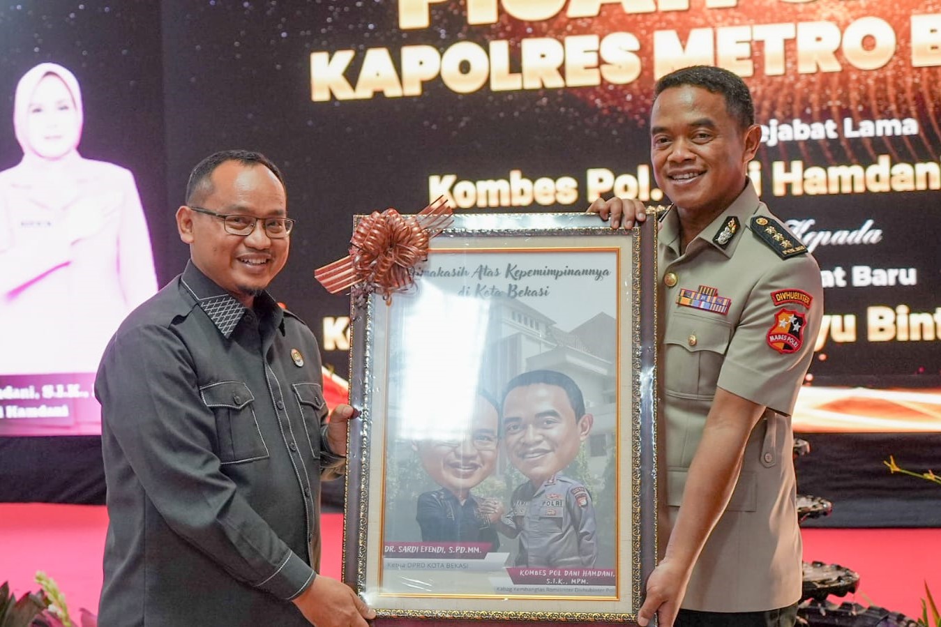 Sementara itu, Kapolres yang baru, Kombes Pol Kusumo Wahyu Bintoro, memberikan apresiasi atas pengabdian Dani Hamdani dan meminta dukungan seluruh pihak untuk melanjutkan kinerja Polres Metro Bekasi Kota. “Beliau (Dani) akan melanjutkan pengabdian kepada bangsa dan negara di tempat lain lagi. Insyaallah ke depan akan turun bintangnya atau jenderalnya, amin,” kata Kusumo.