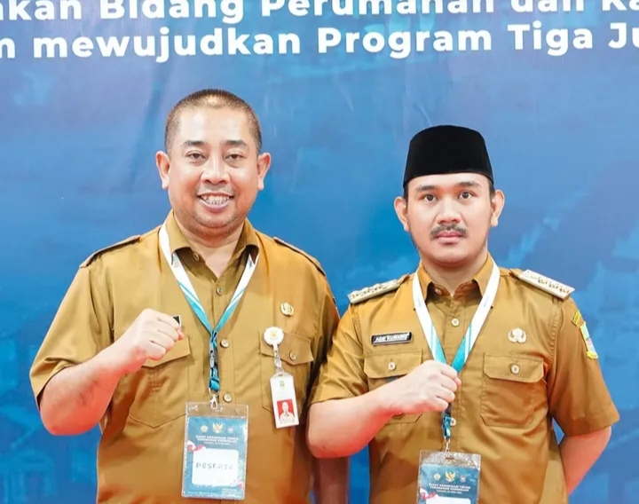 Bupati Bekasi, Ade Kuswara Kunang, bersama Kepala Dinas Perumahan Rakyat dan Kawasan Permukiman, Nurchaidir, menghadiri Rapat Koordinasi Teknis Perumahan Perdesaan yang diselenggarakan di Gedung Sasana Bhakti Praja, Kementerian Dalam Negeri RI, Jakarta Pusat, pada Selasa, 29 April 2025.