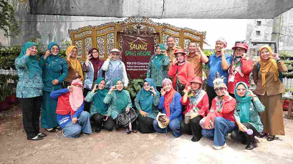 Ketua TP PKK Kota Bekasi Ibu Wiwiek Hargono Tri Adhianto bersama Sekretaris TP PKK Wuri Handayani lakukan monitoring di Kecamatan Mustikajaya untuk penilaian klarifikasi lapangan Anugerah Gapura Sri Baduga tingkat Kota Bekasi.