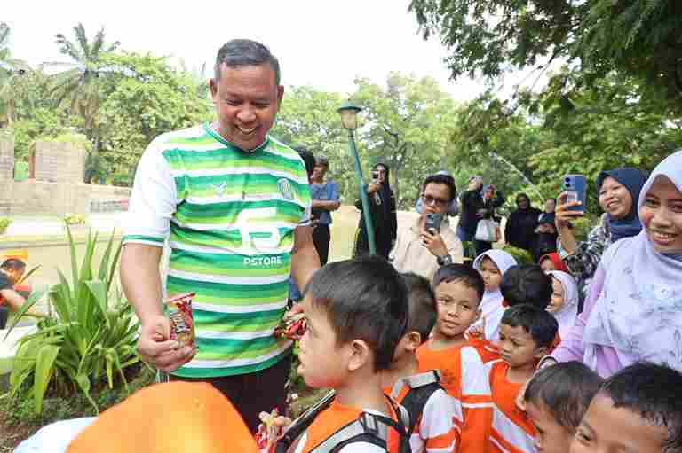 Wali Kota Bekasi, Tri Adhianto, meninjau langsung kegiatan edukasi kesiapsiagaan bencana bagi anak-anak usia dini yang digelar Badan Penanggulangan Bencana Daerah (BPBD) Kota Bekasi melalui program FLASK (Fasilitasi Sosialisasi Kebencanaan), Jumat (17/10).
