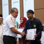 Kota Bekasi — Wali Kota Bekasi, Tri Adhianto, menyerahkan secara simbolis bantuan beasiswa bagi mahasiswa dan mahasiswi tidak mampu se-Kota Bekasi berjumlah 1470 penerima dari 77 Perguruan Tinggi di Kota Bekasi berlangsung di Gedung Graha Bintang, Mustikajaya.