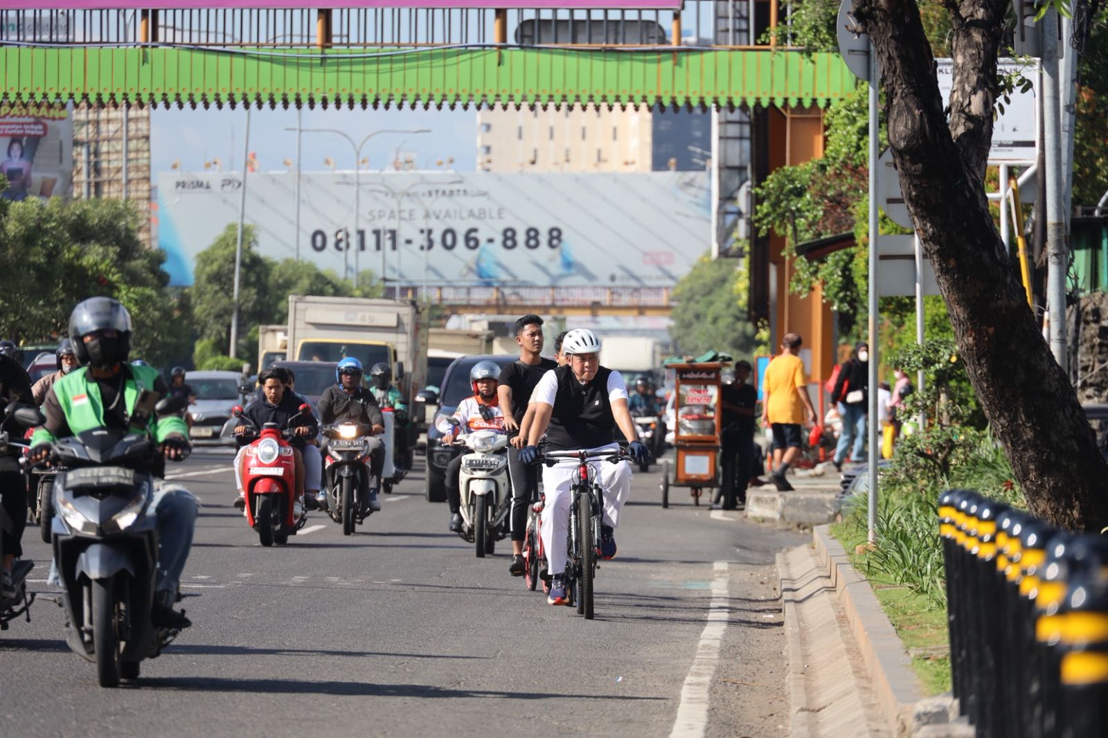Wali Kota Bekasi, Tri Adhianto, memantau langsung pelaksanaan Work From Home (WFH) dengan bersepeda dari kediamannya menuju Kantor Pemerintah Kota Bekasi, Jumat (10/4).